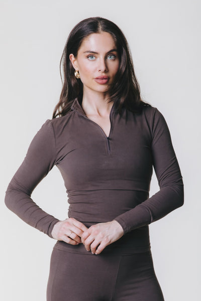 Fitted Zip Top | Brown